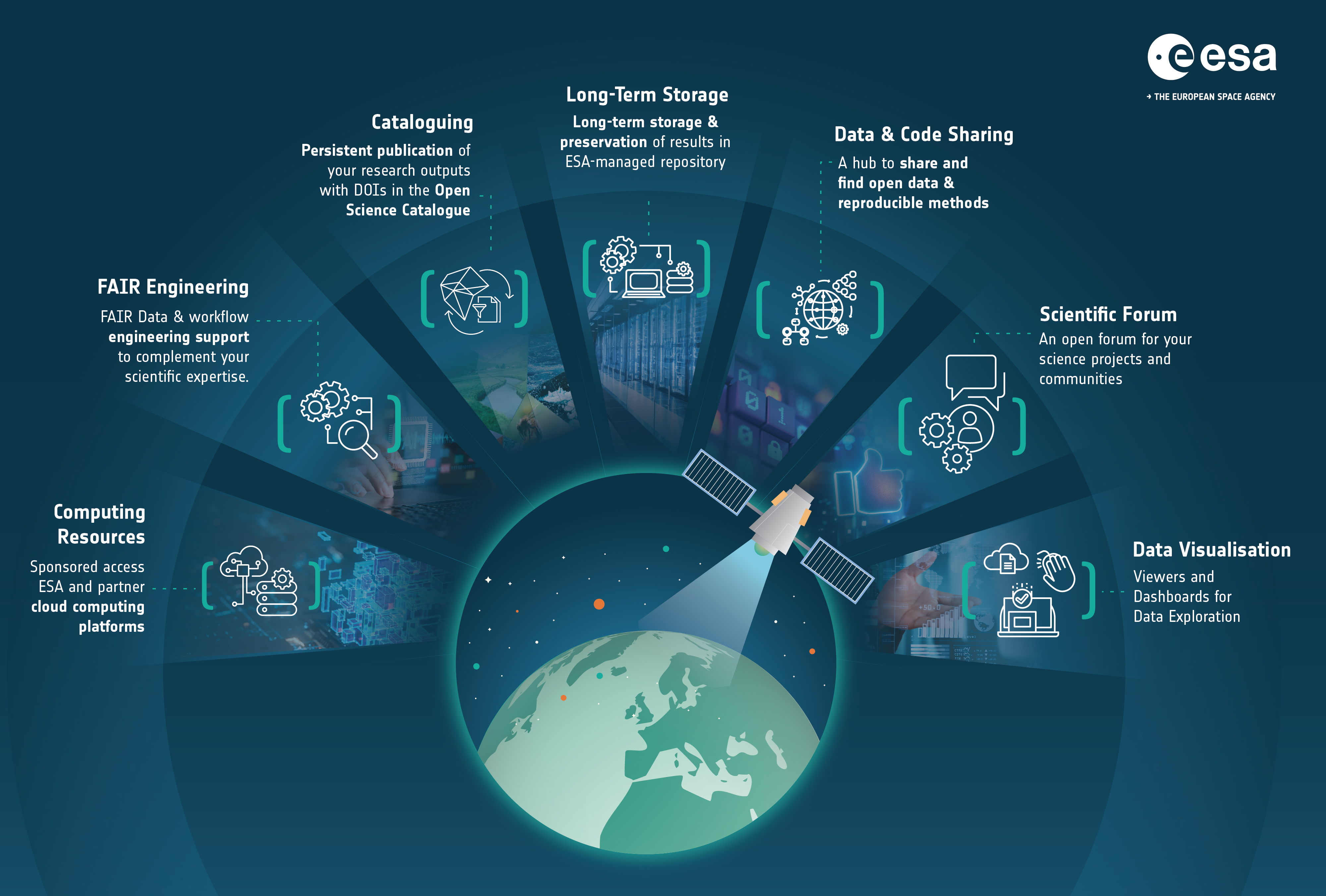 Take time to discover a diverse array of scientific datasets and workflows from ESA-funded research across all Earth System Science domains. Explore these complete examples to learn how your data can become easily discoverable, citable, and fully compliant with ESA's Open Science approach. Try out the various data exploration and visualisation tools and see which of the open-source solutions is best for your project.